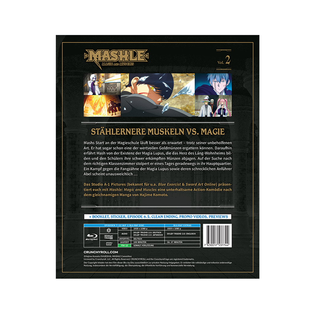 Mashs Start an der Magieschule läuft besser als erwartet – trotz seiner unbeholfenen Art. Er hat sogar schon eine der wertvollen Goldmünzen ergattern können. Daraufhin erfährt Mash von der Existenz der Magia Lupus, die das Herz des Láng-Wohnheims bilden und den Schülern ihre schwer erkämpften Münzen abjagen. Auf der Suche nach dem richtigen Klassenzimmer stolpert er eines Tages geradewegs in ihr Hauptquartier. Ein Kampf gegen die Fangzähne der Magia Lupus sowie deren schrecklichen Anführer Abel scheint unausweichlich … Das Studio A-1 Pictures (bekannt für u.a. Blue Exorcist & Sword Art Online) präsentiert euch mit Mashle: Magic and Muscles eine unterhaltsame Action-Komödie nach dem gleichnamigen Manga von Hajime Komoto.